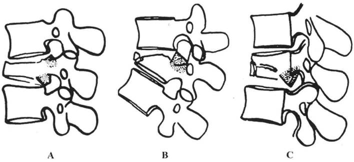 - шейном, грудном и поясничном отделе позвоночного столба.
